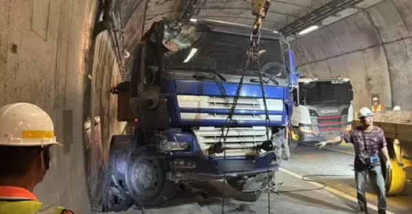 砂石車東澳隧道猛撞小客車再撞牆壁 民眾驚呼「沒事沒事」