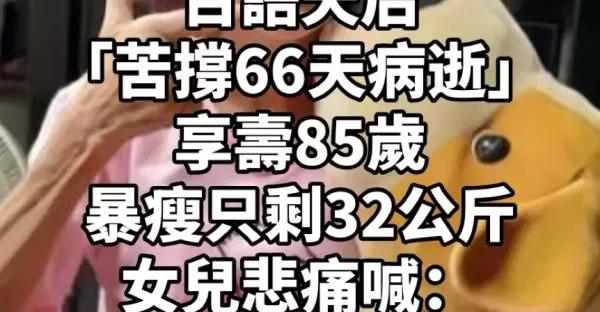 台語天后「苦撐66天病逝」 享壽85歲,暴瘦只剩32公斤,女兒悲痛喊「原本快出院了」:我做不到節哀