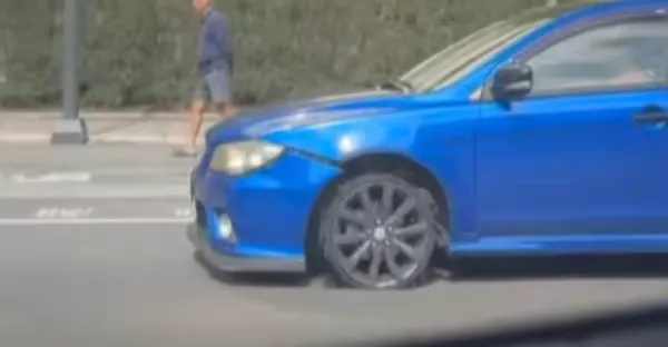 嘎啦嘎啦! 無視爆胎硬要開 民眾看傻「用生命開車」