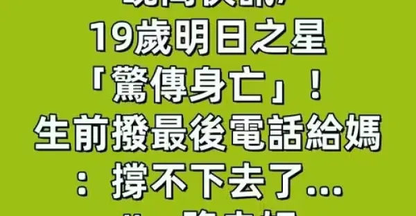 19歲明日之星「驚傳身亡」!生前「撥最後電話給媽」: 撐不下去了...