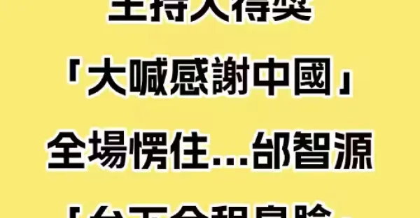脫稿演出?主持人得獎「大喊感謝中國」全場愣住 邰智源「台下全程臭臉」好尷尬!!