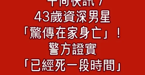 午間快訊/43歲資深男星「驚傳在家身亡」!警方證實「已經死一段時間!」