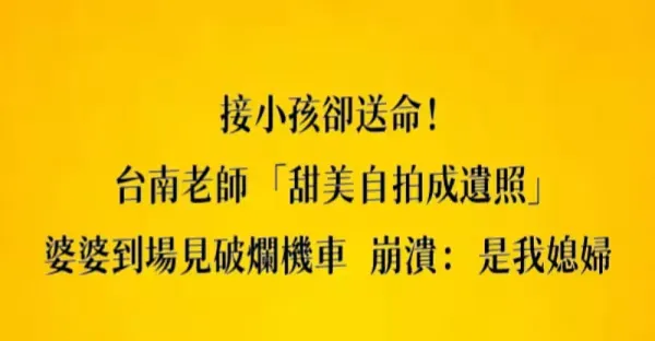 接小孩卻送命!台南老師「甜美自拍成遺照」, 婆婆「到場見破爛機車」崩潰:是我媳婦