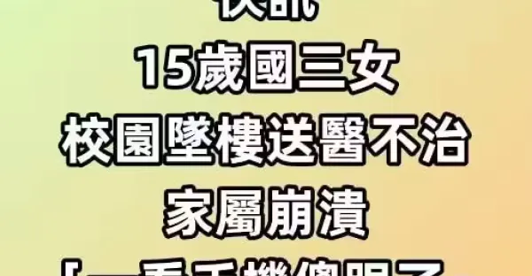快訊/15歲國三女「校園墜樓送醫不治」「一看手機傻眼了」 家屬崩潰