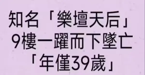 知名「樂壇天后」9樓躍下墜亡!「享年39歲!」