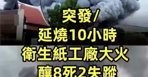 突發/延燒10小時 衛生紙工廠大火釀8死2失蹤 罹難者多位於辦公區!