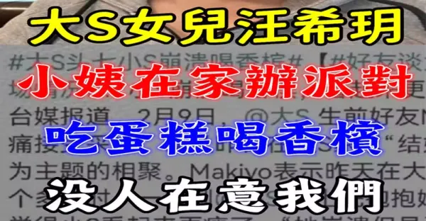 大S女兒汪希玥直指:小姨在家辦派對,吃蛋糕喝香檳,沒人在意我們……