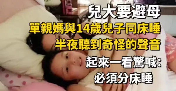 「兒大要避母」,單親媽與14歲兒子同床睡,半夜聽到奇怪的聲音,起來一看驚喊:必須分床睡