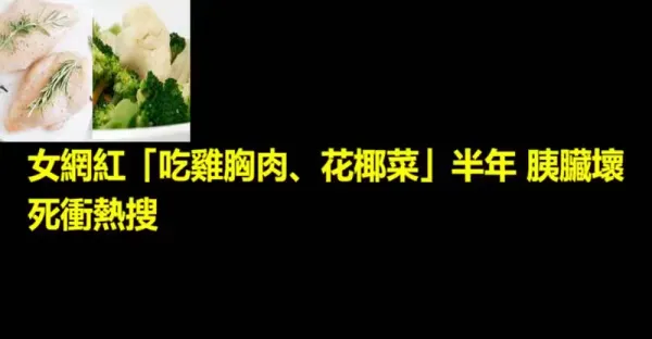 女網紅「吃雞胸肉、花椰菜」半年 胰臟壞死沖熱搜