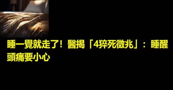 睡一覺就走了!醫揭「4猝死徵兆」:睡醒頭痛要小心