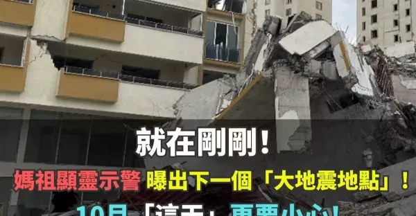 就在剛剛!媽祖顯靈發出緊急警告,下一個「大地震地點」!10月「這天」更要小心!