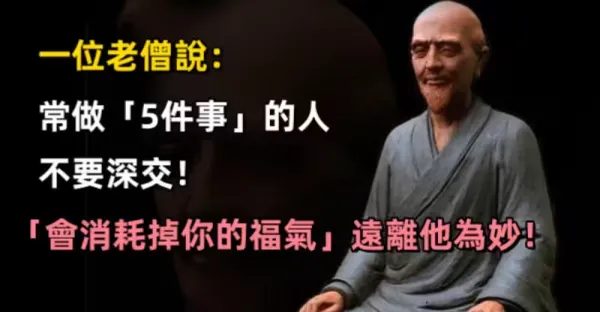 一位老僧說:常做「5件事...」的人不要深交 「會消耗掉你的福氣」遠離他為妙!