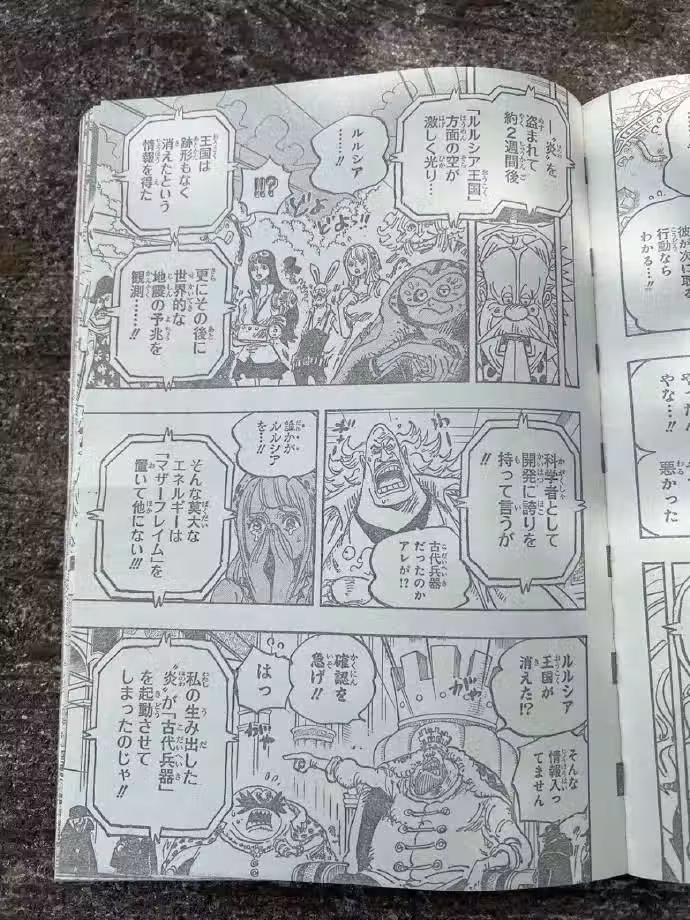 老貝說空白100年戰爭還沒結束,這句話把全世界搞懵了:800年前的人都沒了,戰爭怎麼繼續?為什麼要繼續?老貝沒有接著這個話往下說,也許他知道更多,但尾田不能讓他說下去,空白100年說到這裡該打住了,所以接下來老貝的話題,就轉移到了古代兵器上面。