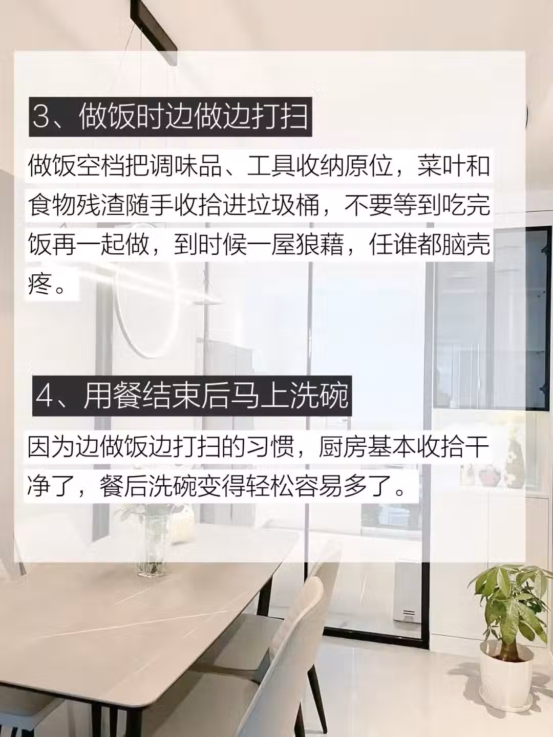 由於前面養成了邊做飯邊收拾的習慣,廚房在烹飪過程中已經保持了相對的整潔。