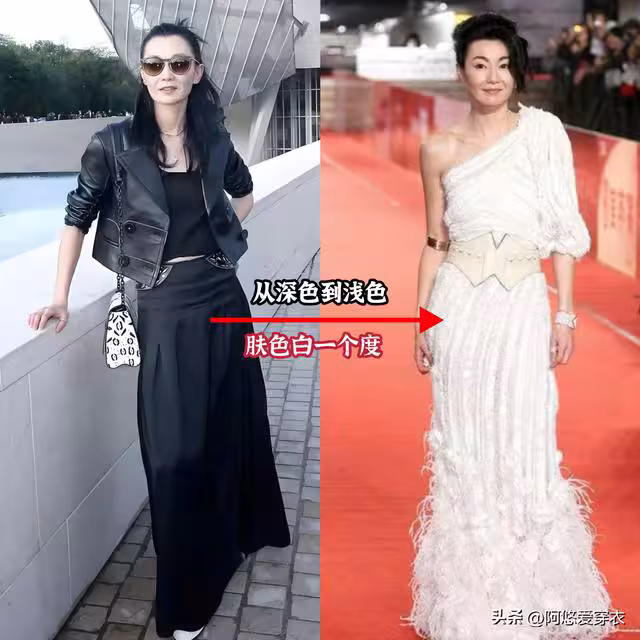 ②淺色的衣服自帶減齡感,深色看著更成熟
