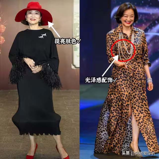 別總是穿普通的棉質、麻質,它們的舒適度雖然不錯,但結合深色的衣服,看起來可能會比較單調沉悶;我更建議大家換成有光澤感的面料,例如絲綢、緞面,或者加入亮片點綴,既提亮了膚色,又增添了幾分華麗貴氣。