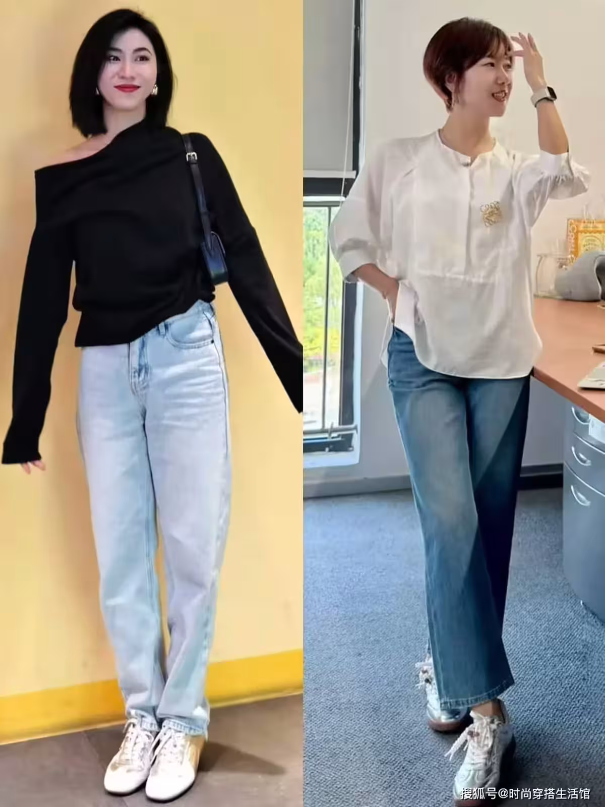 ⑴闊腿褲量感大顯拖沓,直筒褲穿上更利落