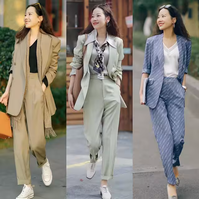 「上窄下寬」的梨形身材姐妹,很適合穿闊腿褲、煙管褲;腹部豐滿的蘋果型身材,可以通過錐形褲藏住贅肉;腰線明顯的沙漏型身材,穿修身西褲或九分褲,都能讓自己美得更出眾。