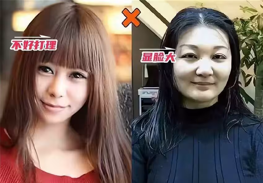 又或者還有一部分的中年女人中年發福,臉部的發腮問題明顯,若是髮型選錯了更容易放大面部的留白,顯得臉大。