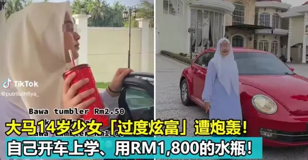 大馬14歲少女「過度炫富」遭炮轟!自己開車上學、用RM1,800的水瓶!