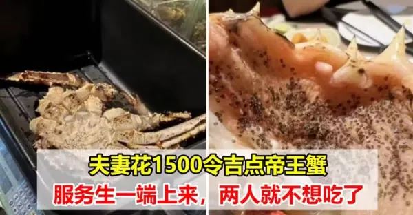 夫妻花1500令吉點帝王蟹,服務生一端上來,兩人就不想吃了