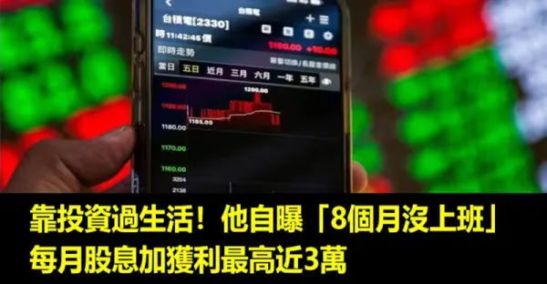 靠投資過生活!他自曝「8個月沒上班」 每月股息加獲利最高近3萬