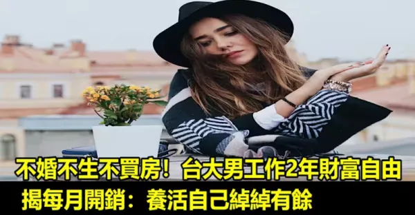 不婚不生不買房!台大男工作2年財富自由 揭每月開銷:養活自己綽綽有餘
