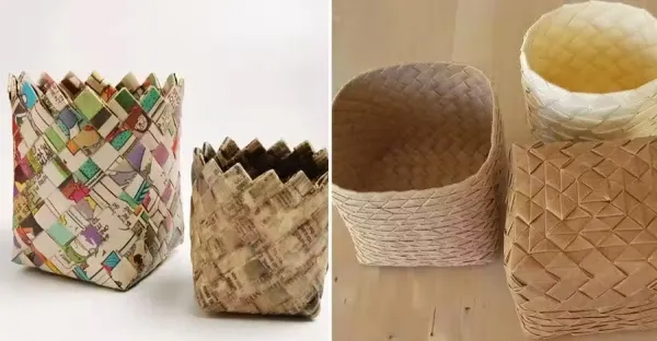 廢舊報紙都不要扔,折成紙條後拿來編,家居收納用不完!附教程